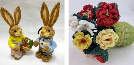 草编工艺品是利用各地所产的草,就地取材,编成各种生活用品与装饰用品等,有的利用事先染有各种彩色的草,编织各种图案,有的则编好后加印装饰纹样,既经济实用,又美观大方。