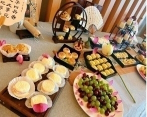 中国传统糕点如:桂花酥、红豆饼、核桃酥等宫廷糕点,精致又美味,加上各色时令水果,精美的中式摆盘跟装饰,感受浓郁宫廷茶歇。