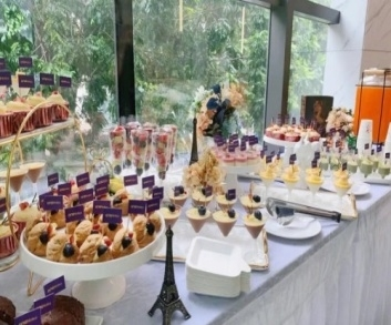 各色西式甜品如:提拉米苏、水果慕斯、黑森林蛋糕、搭配咖啡、红茶等饮品,让来宾沉浸在食物的芳香中,感悟西式茶歇的美味多彩。