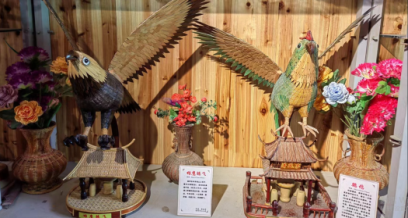 说到竹编,我们最先想到的可能是竹筐、竹篮等一些实用的器件,但在艺人手里,竹编也可以变得活灵活现。从金鸡报晓、白鹤亮翅,到天安门城楼,造型多变、多姿多彩、栩栩如生。